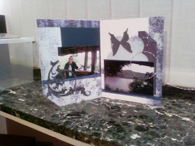 Ja ik noem het"Het mislukte boek" ik had uit het hotel in Winterberg deze place mats meegenomen,waar de platte grond van winterberg opstond,ik zou er eens een leuk boekje van maken,en alles ging heel goed tot ik met de Zutter aan de slag ging,en toen ging het mis natuurlijk,de middelste gaatjes waren perfect maar dan.....liep het goed fout,ik wou eerst alles in de vuilbak kieperen,want ik was echt ontgocheld,maar heb er dan maar veel lintjes en strikjes en ringen ingedaan om het toch een beetje te verstoppen